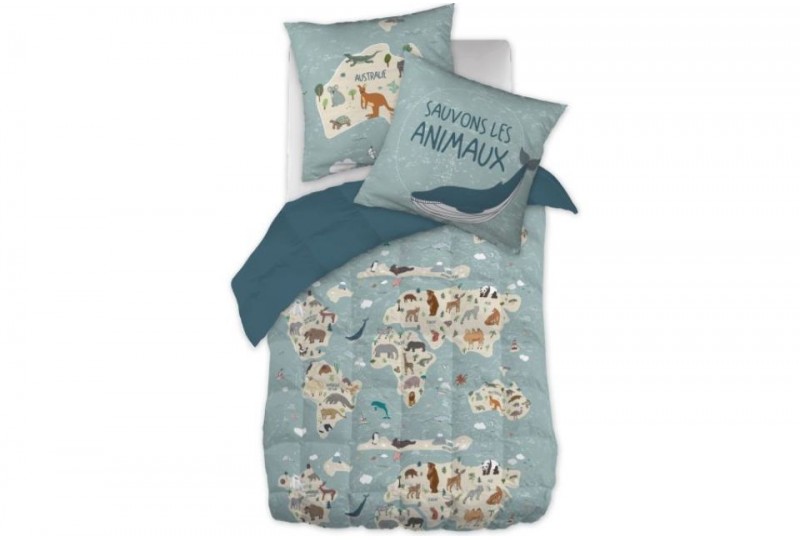Couette imprimée 140x200 cm + 1 taie d'oreiller - Map